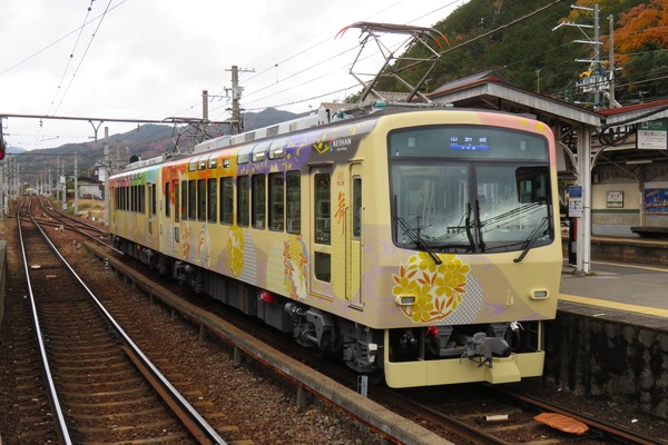 (写真)叡山電鉄100周年に登場した100系「舞」 宝ヶ池にて 叡山電鉄は2025年で100周年を迎えた。両運転台の700系2両を改造して···
